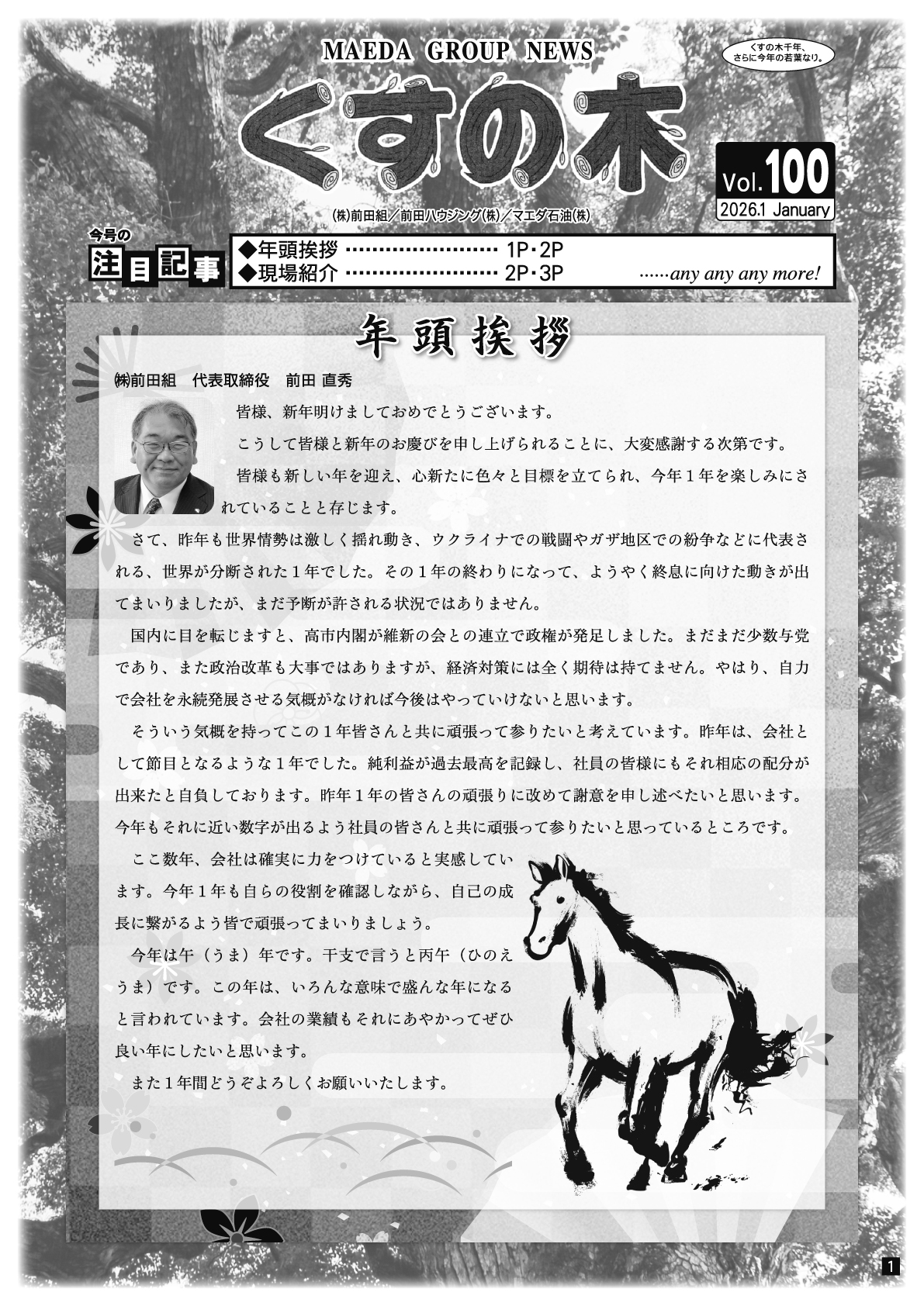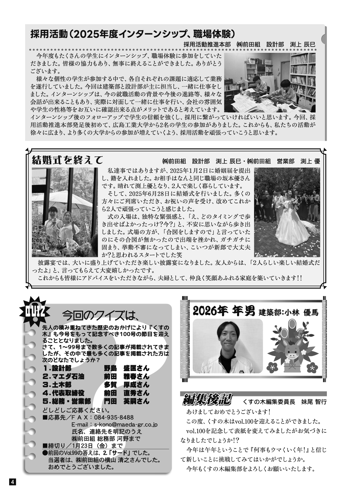 社内報「くすのき第100号」を発行いたしました。