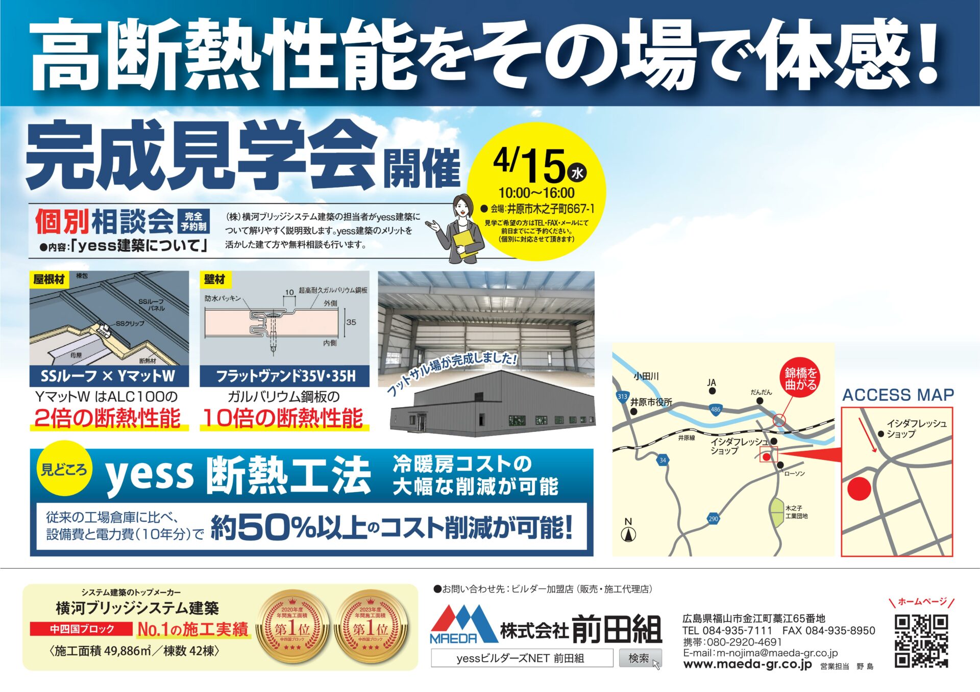 4月15日(水)井原市にて、YESS建築を採用したフットサル競技場の完成見学会を開催します。